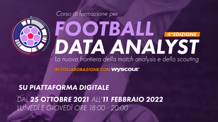 Corso di formazione in collaborazione con WyLab per Football Data Analyst, con l’obiettivo di fornire ai club di calcio professionistici italiani gli strumenti e le nozioni indispensabili per gestire efficacemente l’enorme quantità di dati generati dalla rivoluzione digitale e dall’uso sempre più diffuso di wearable, sensori e sistemi di tracking.